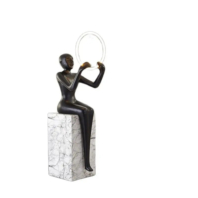 Blending art, architecture, and elements of fine design, this faux marble verdigris, quality designer resin lamp becomes an exquisite 360-degree sculptural work of art. Its warm bell-shaped shade softens the light to create a cozy, inviting atmosphere. Venture away from the everyday and add a bit of sophistication to your space.