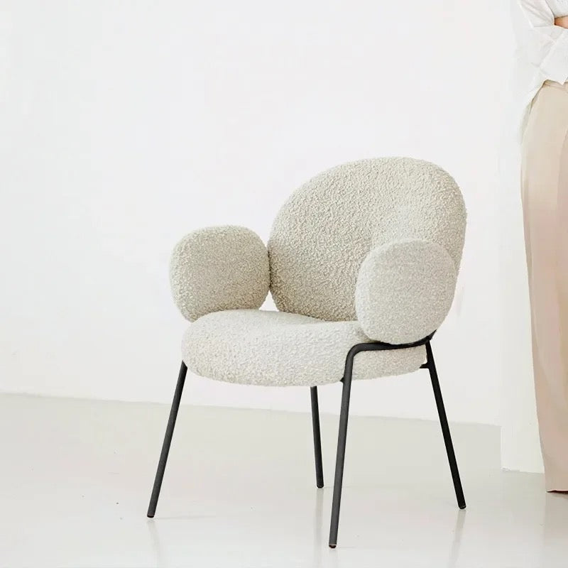 Elevate your dining experience with our exquisitely designed Modern Minimalist dining chair. This chair boasts elegant black natural solid wood legs, offering a sturdy and refined foundation. The high-quality boucle fabric upholstery envelops the chair in luxurious comfort, providing a soft and inviting seating experience. With its sophisticated design and premium materials, this chair transforms any dining area into a chic and stylish haven. Enjoy your meals in the lap of luxury with this bold statement piece that effortlessly combines style and comfort.