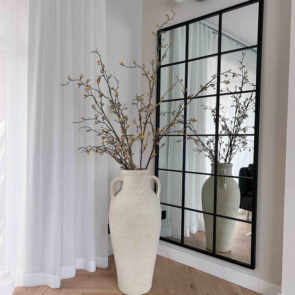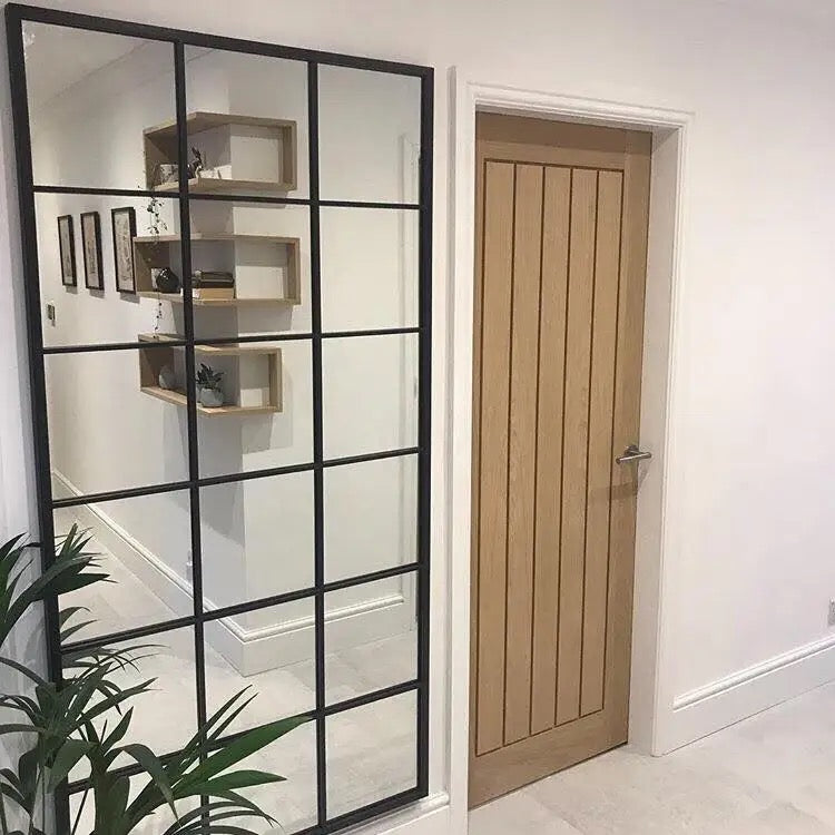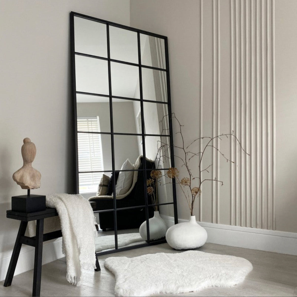 Capture the perfect reflection with our modern black metal window shape wall and floor mirror. Its sleek, full-length rectangular frame adds a chic touch to any décor. Challenge yourself to find the perfect angle and take your style up a notch!