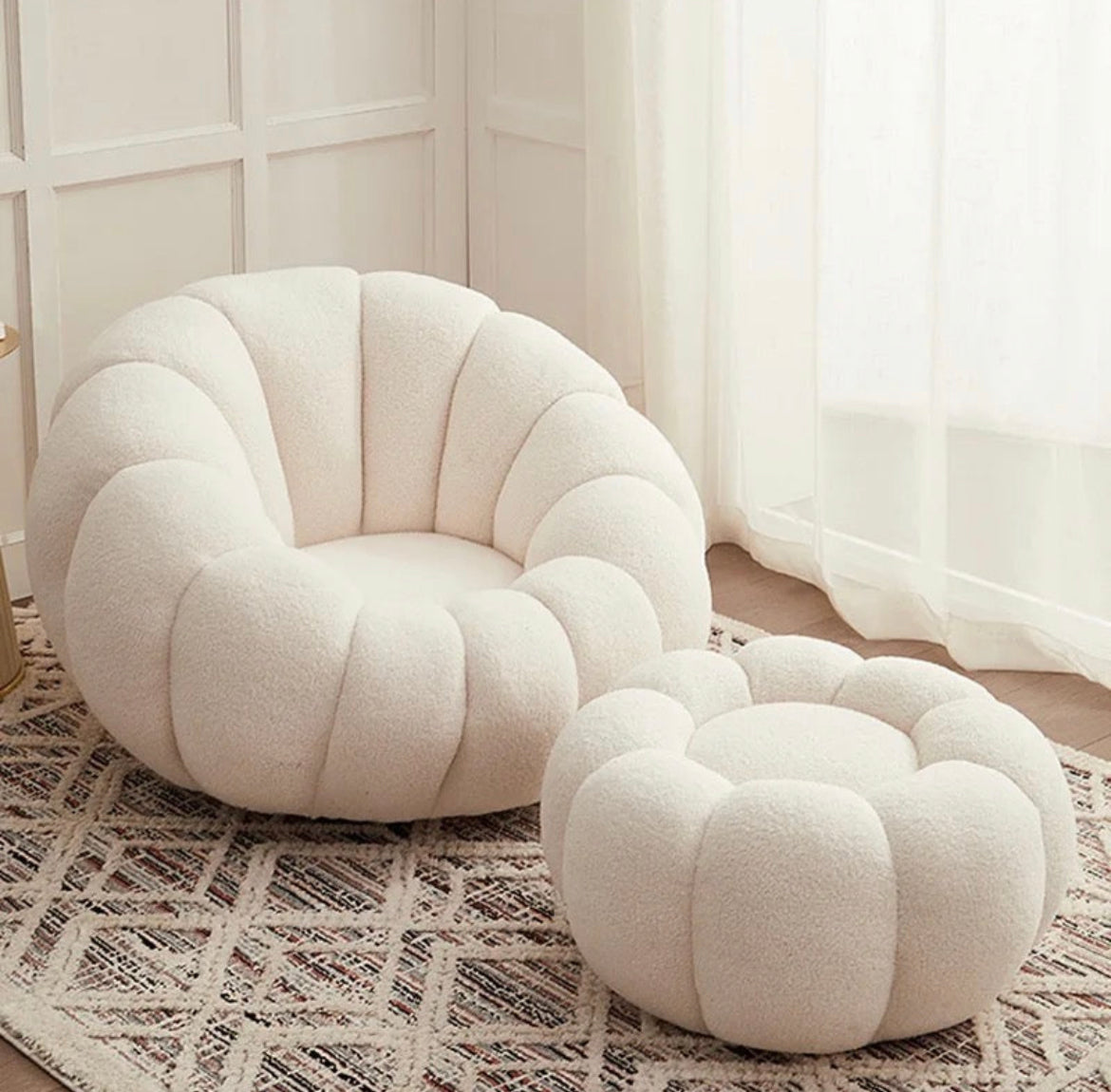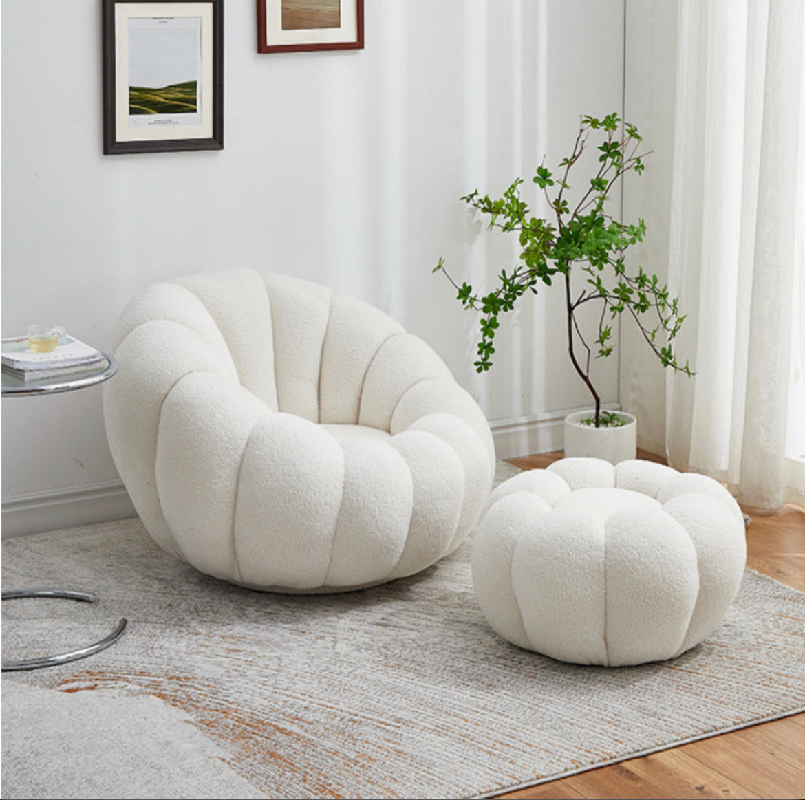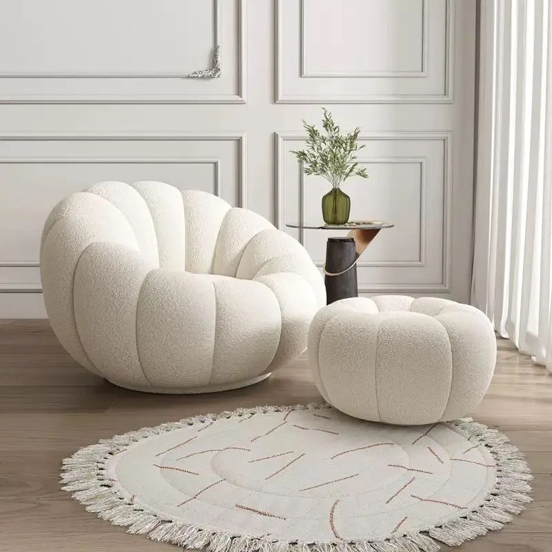 This pumpkin design accent chair and stool has an exquisite design which makes this accent chair adorable and the center attraction in the home furniture. The accent chair is filled with cotton filling which provides cozy and snugged seating. The metallic base of this accent chair provides stability to the chair which will last for years. This metallic base is also anti-rust and anti-corrosion. The ergonomic design of this accent chair provides great relaxation to the body which helps to remove fatigue from the body. This accent chair will provide elegance to the area placed. The high-quality construction of this accent chair makes this chair durable and skin-friendly. This lovely and adorable pumpkin design accent chair will help to enjoy leisure time.