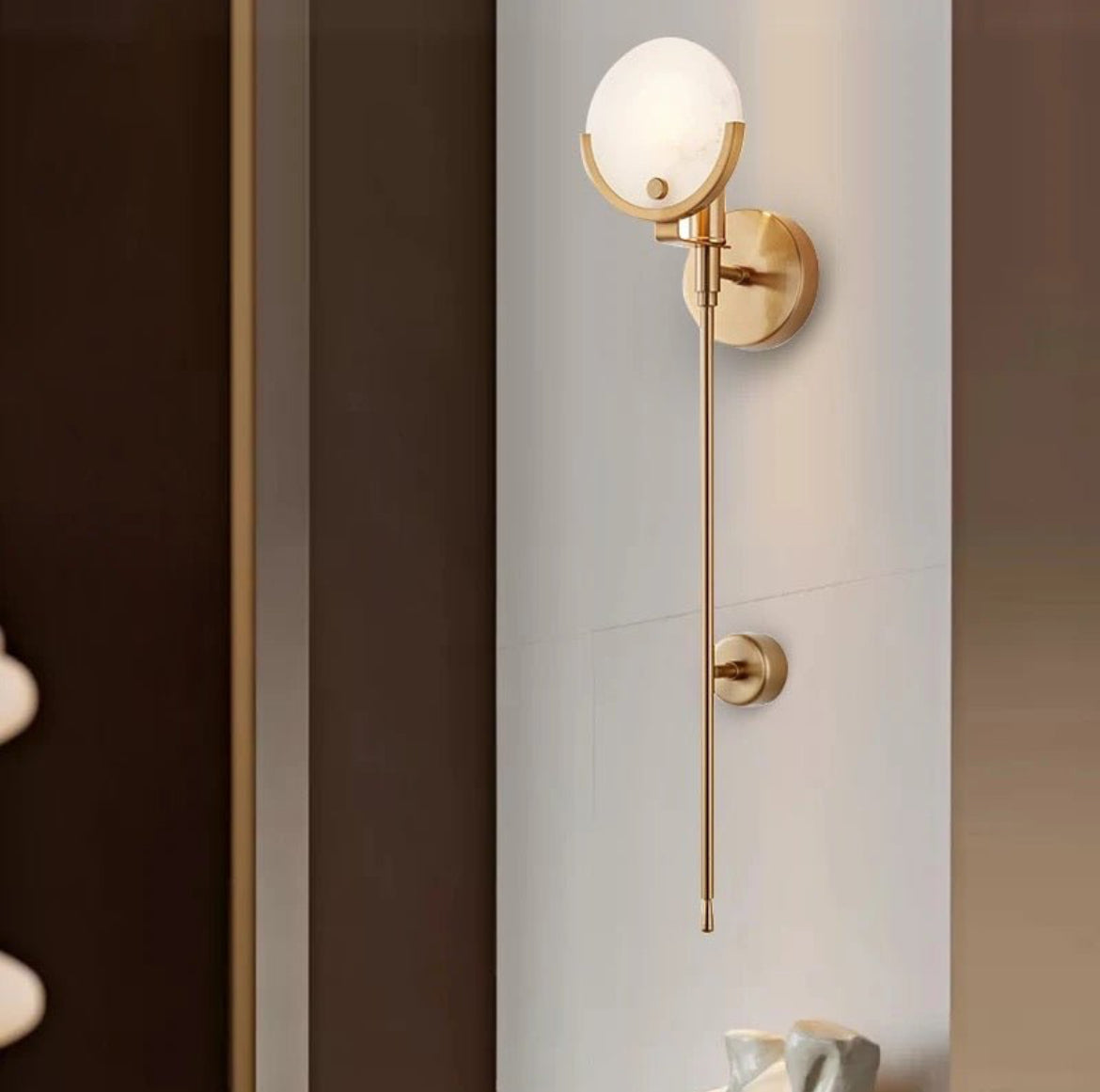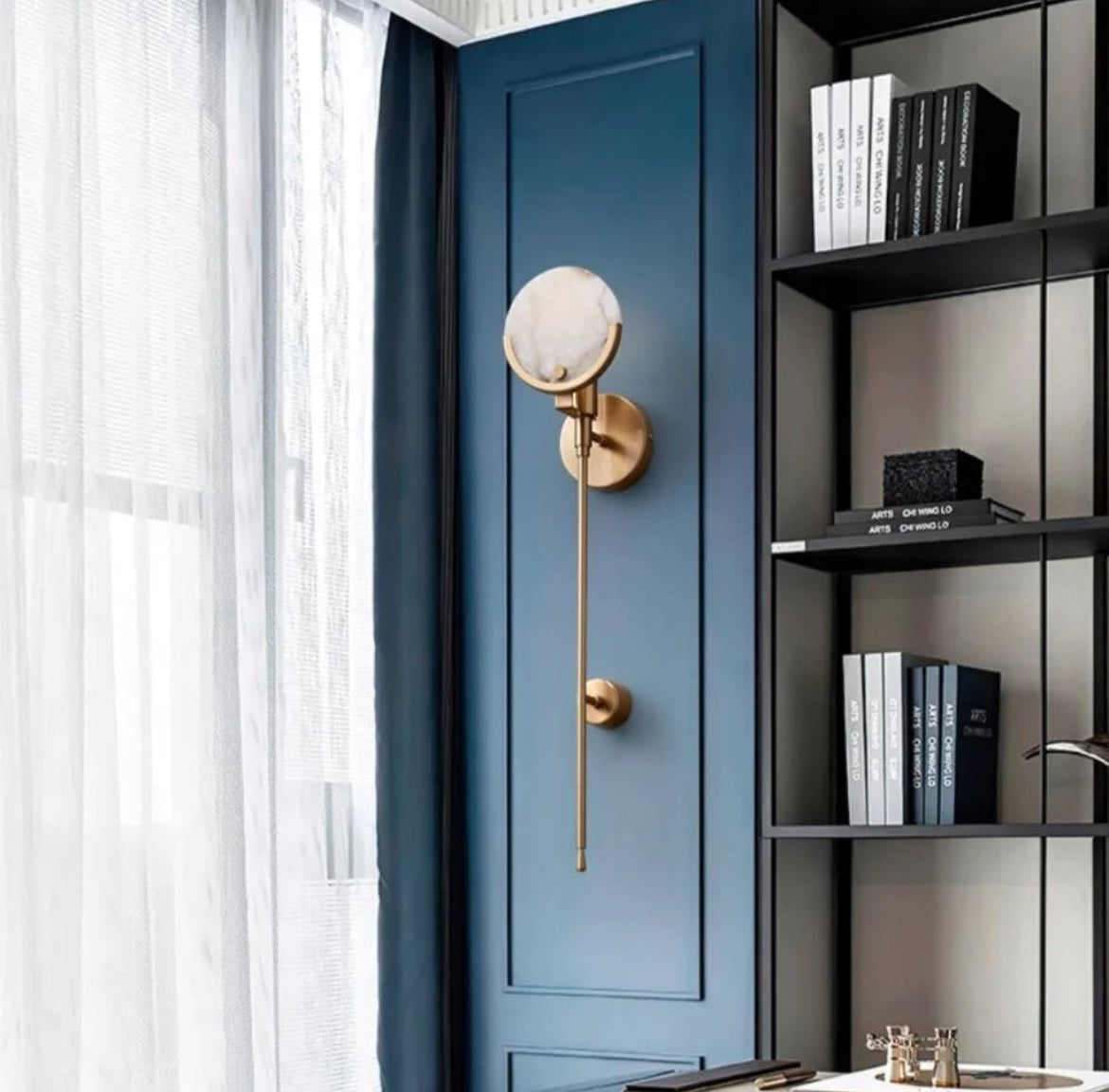 Gold Marble Modern Wall Lamp is a stylish lighting choice for any room, with a striking marble shade and gold body to add a touch of luxury. The perfect way to brighten up your living space.
